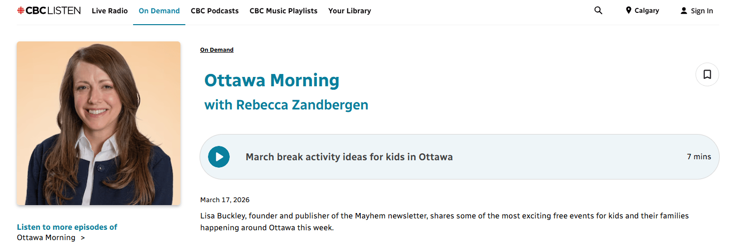 We joined CBC Ottawa Morning yesterday to share our favourite free March Break activities happening across the city this week. Missed it? You can listen back below.